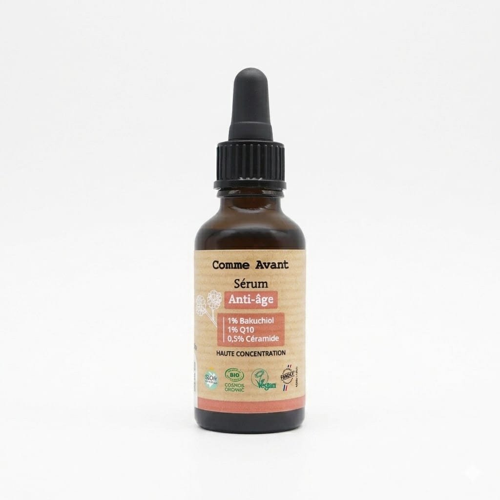 3 actifs hautement concentrés : 1% Bakuchiol, 1% Q10 et 0,5% Céramide
